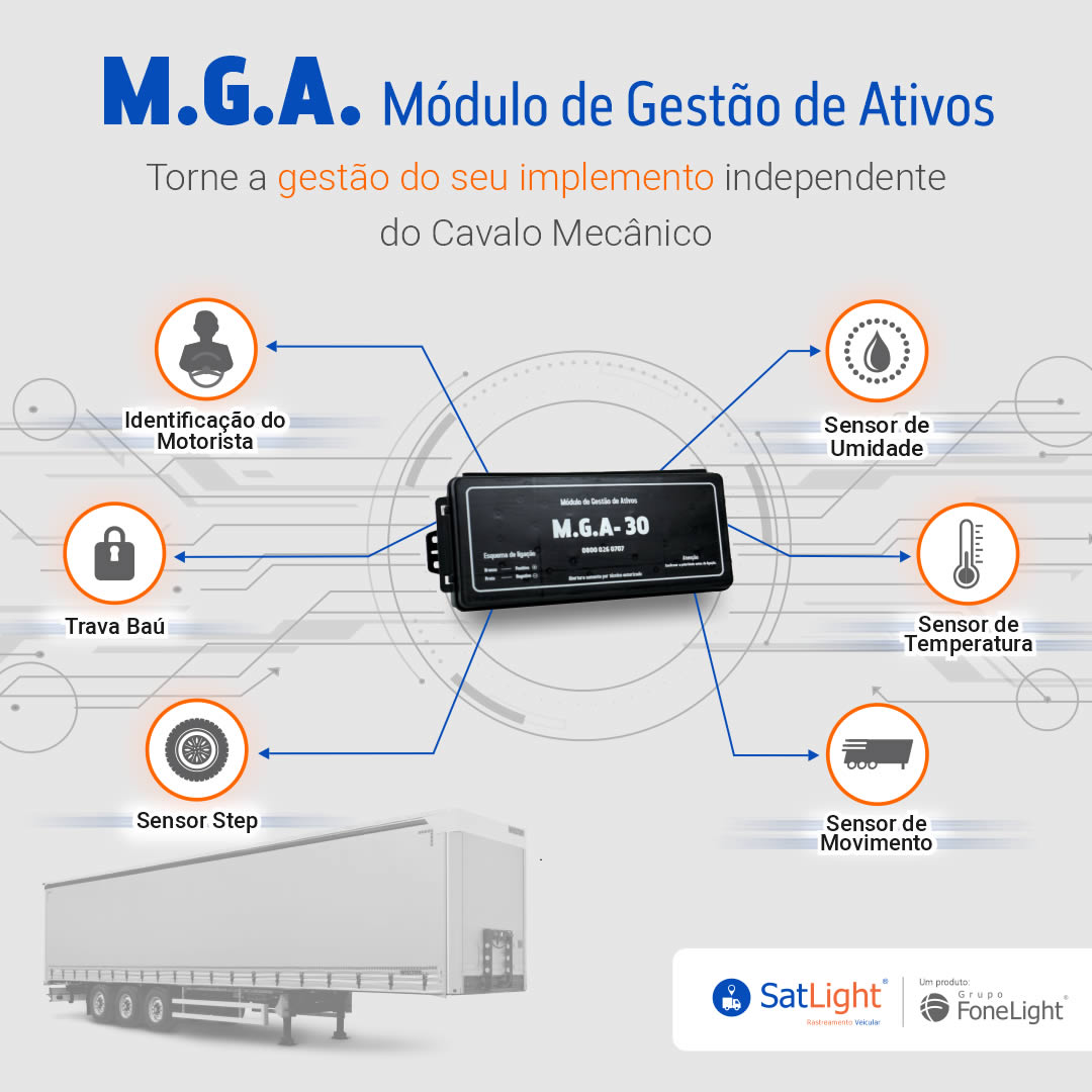 Produto que possibilita o rastreamento de semirreboques, fornecendo em tempo real diversas informações via software, tais como: localização, trajetos, hubodômetro via GPS, velocidade entre outras funções.